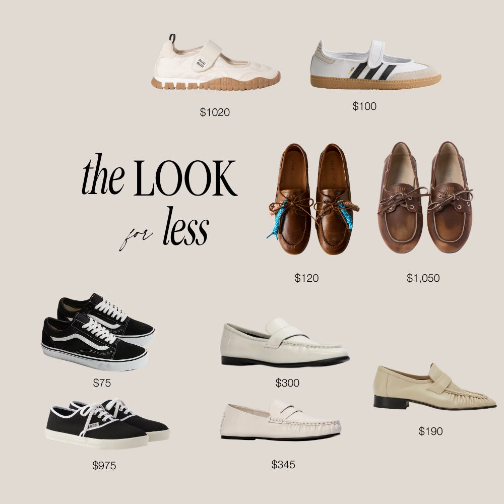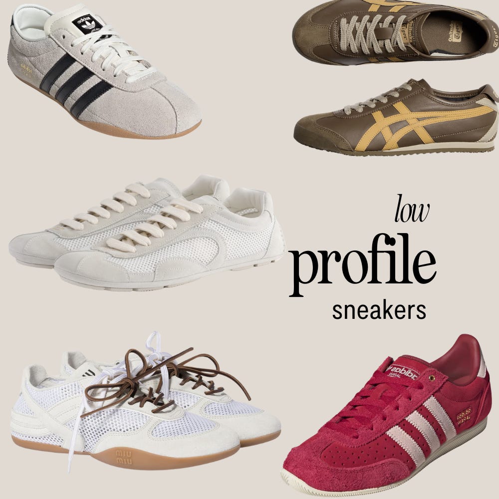I have my eye on some low-profile sneakers. While you can certainly still wear your Adidas Sambas (and I plan on it!), even slimmer profiles are coming to the forefront, including the Sneakerina (a more ballet-inspired look). I’m not sure about a literal ballet sneaker just yet, but I DO have my eye on Adidas Tokyo and Japan in a couple of fun colorways, as well as the Onitsuka Tiger. Again, taking inspo from MiuMiu and Prada here. However, I do think Prada took a little bit of inspo from Vans on these. Get the Vans - I have and own, and they are comfy! These and these are cute too!